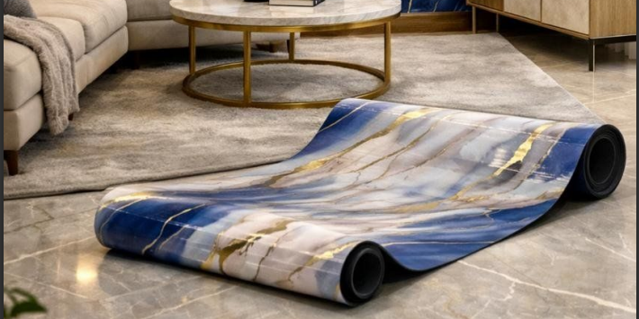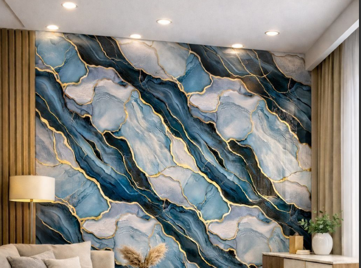 Self Adhesive Midnight Azure Marble & Gold Inlay Mural Pattern UV Marble Sheet
