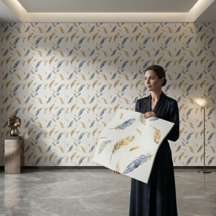 Self Adhesive White Feather Design 2.5×2.5 Foam Sheet