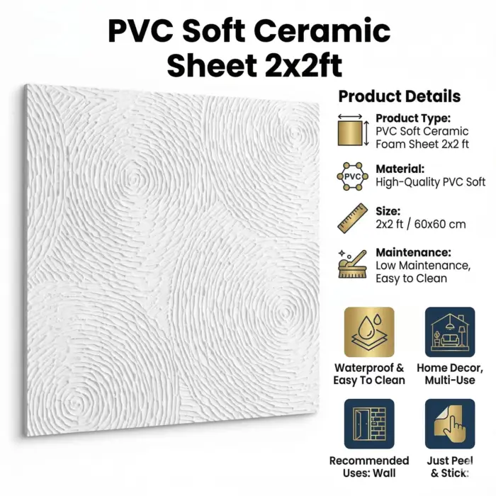 PVC Soft White Texture Ceramic Foam Sheet 2X2 ft