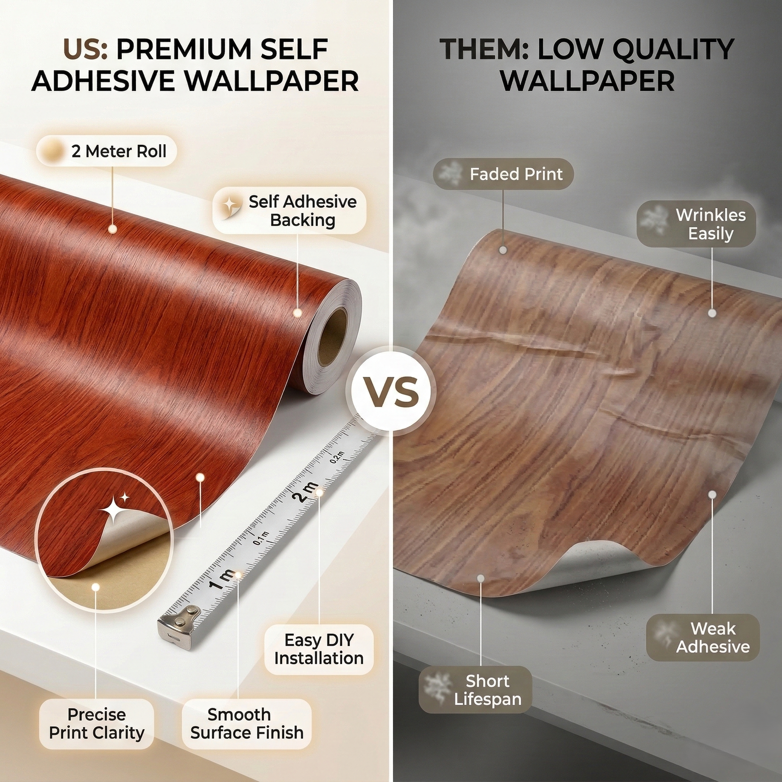 Self Adhesive Dark Brown Shade Texture Wallpaper Roll 2 Meter