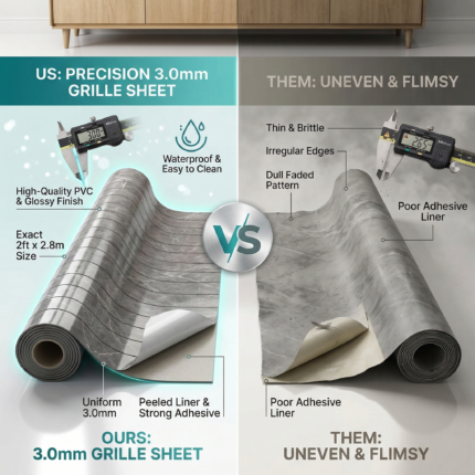 Enhance your interiors with this premium PVC Grille Sheet (2 ft × 2.8 m, 3 mm thickness)—a perfect blend of style, durability, and practicality. Crafted from high-quality PVC, it is lightweight, moisture-resistant, termite-proof, and ideal for modern wall décor. The sleek linear design adds depth and elegance to any residential or commercial space while ensuring easy installation and minimal maintenance.