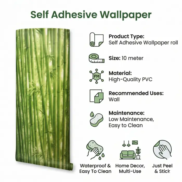 Self Adhesive Wallpaper Bamboo Texture 10 Meter