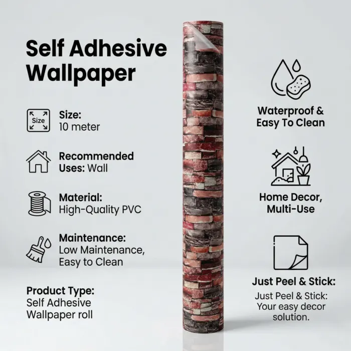 Self Adhesive Wallpaper Colourful Bricks Texture 10 Meter