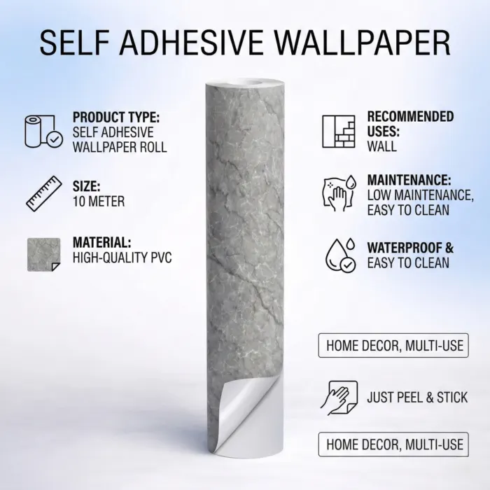 Self Adhesive Wallpaper Grey Texture 10 Meter