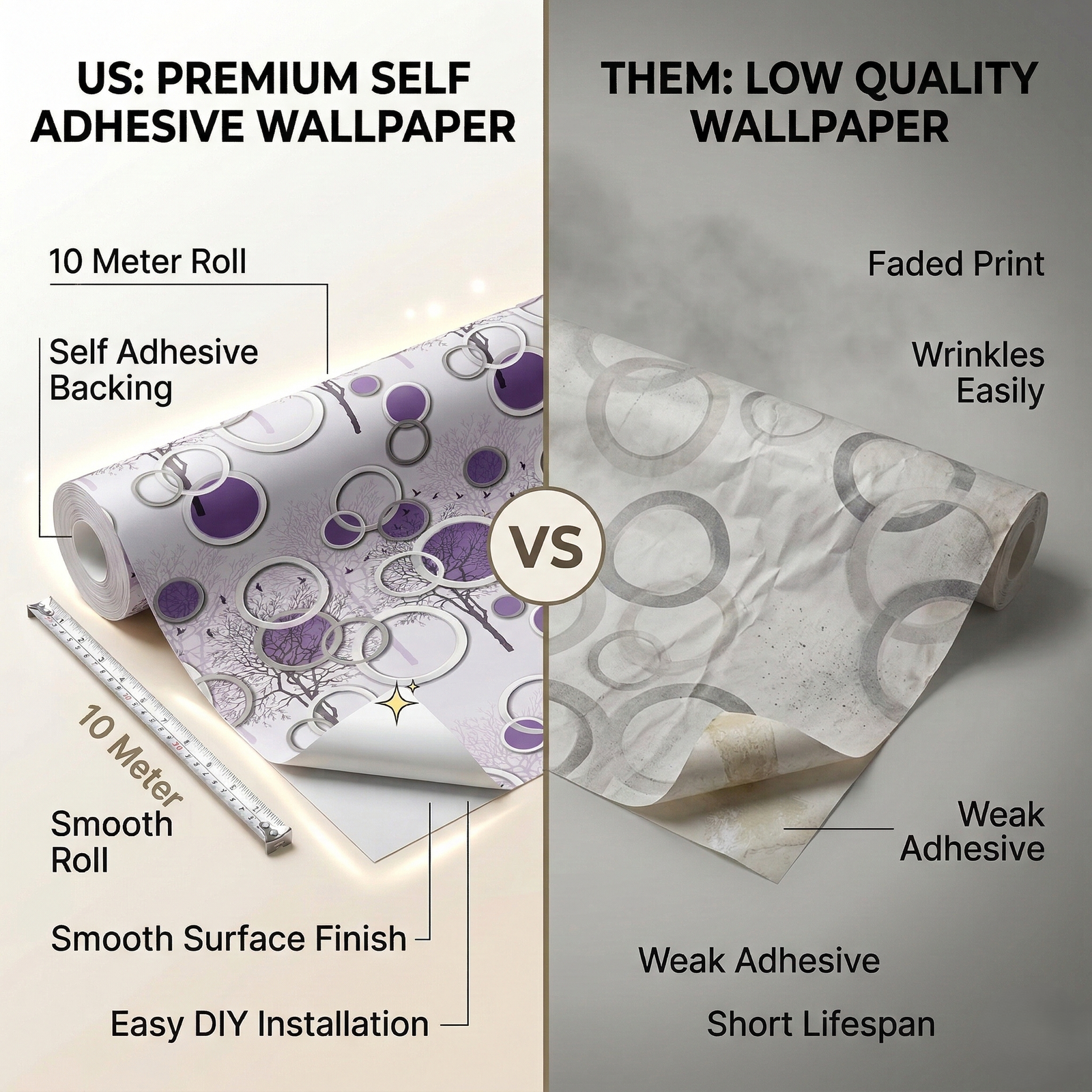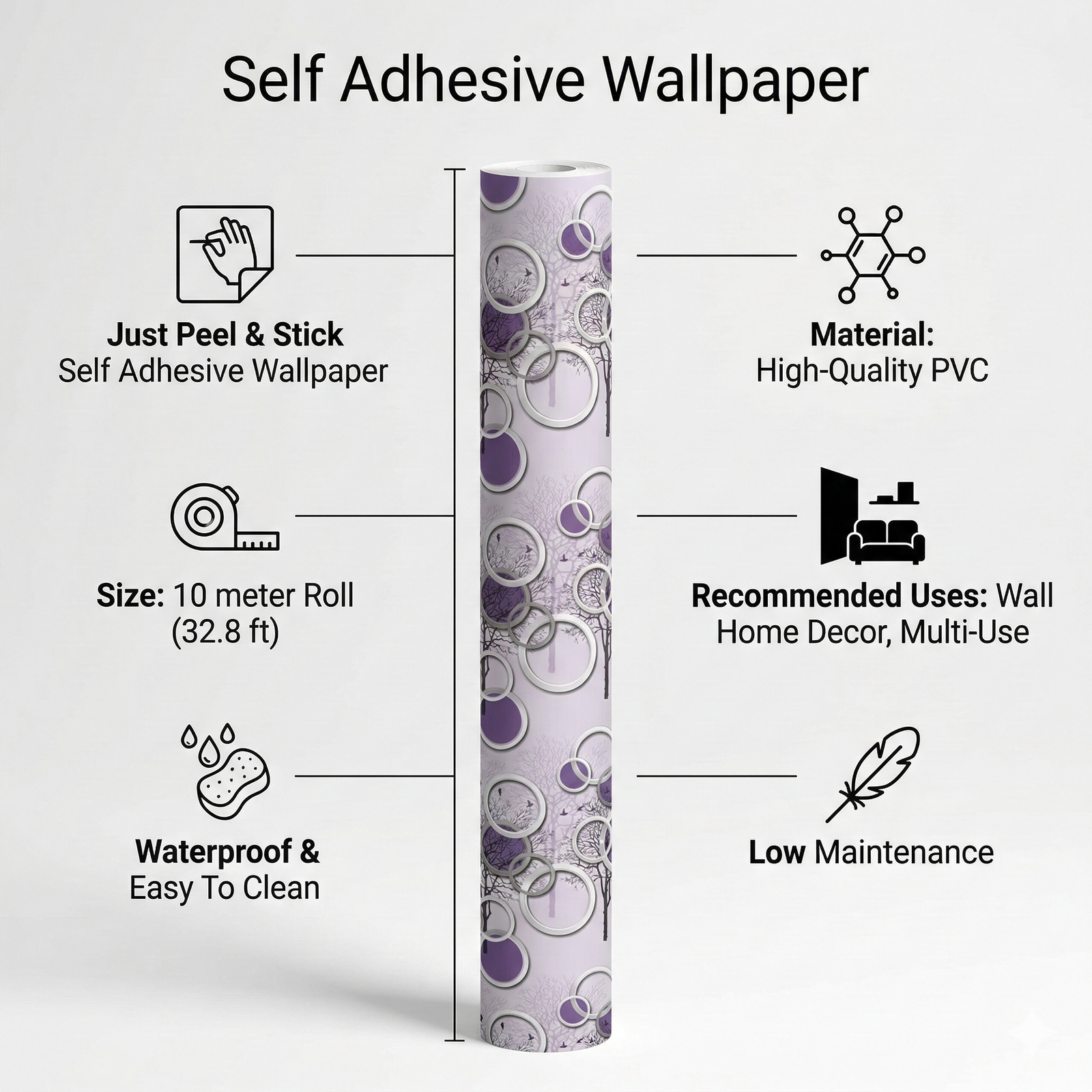 Self Adhesive Wallpaper White Purple Circle Texture 10 Meter