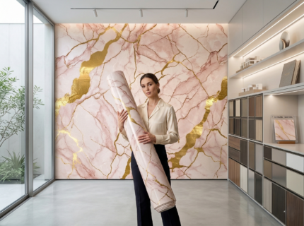 Self Adhesive Rose Quartz Abstract with 24K Gold Pattern UV Marble Sheet