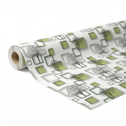 Self Adhesive Wallpaper White Green Square Texture 10 Meter