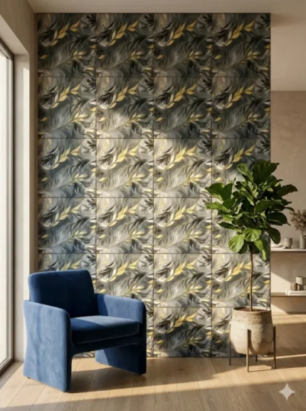 Self Adhesive Grey UV Marble Sheet (Gold Foil)