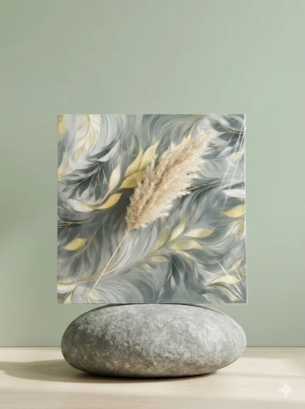 Self Adhesive Green Leaf Texture UV Marble Sheet (Gold Foil)
